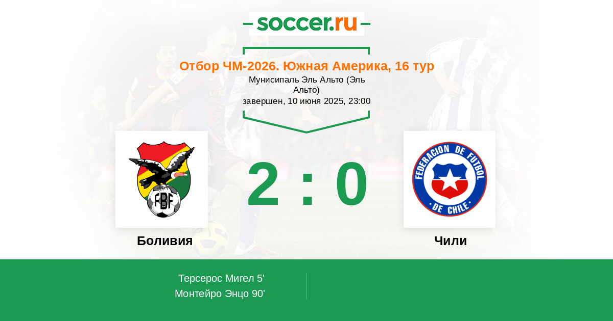 5' (1:0) Терсерос Мигел (7) (Медина Диего (3))