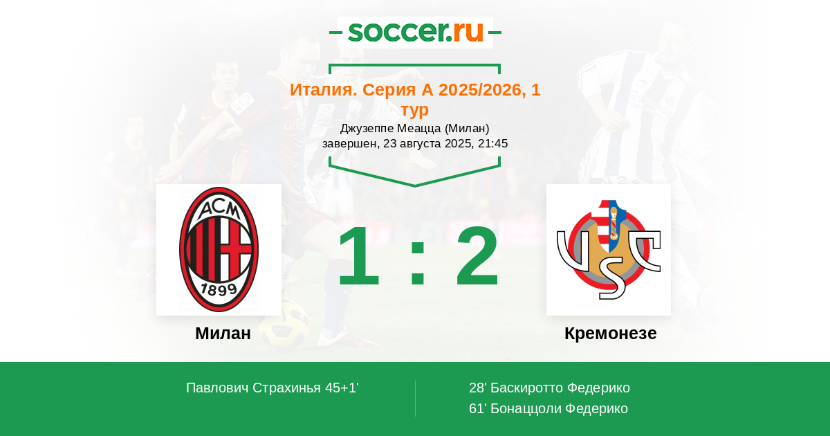 61' (1:2) Бонаццоли Федерико (90) (Пеццелла Джузеппе (3))