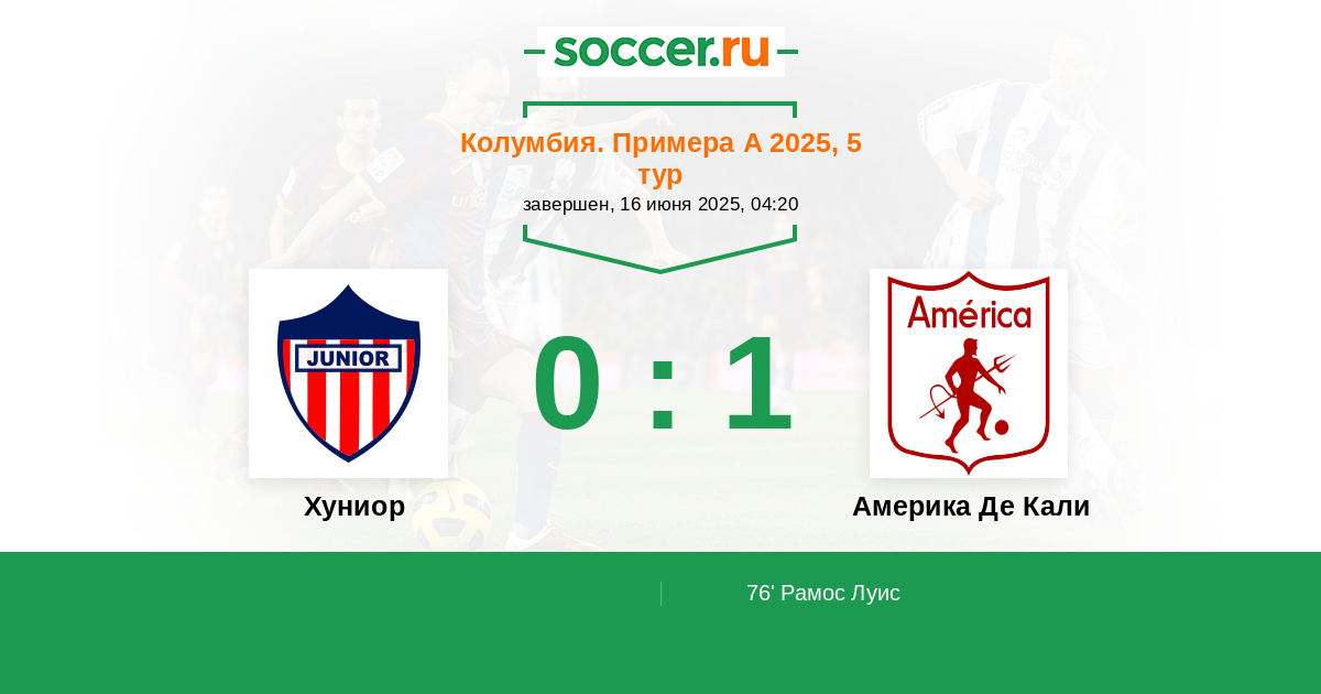76' (0:1) Рамос Луис (9) (Мена Эснейдер (26))