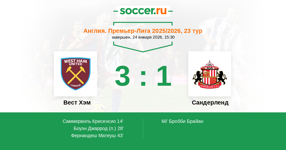 Вест Хэм - Сандерленд ! хозяева поля находятся в плачевном положении и если вовремя не поправить ситуацию им грозит вылет . Гости в лучшем положении и даже могут расчитывать при благоприятном расскладе на ЕК .