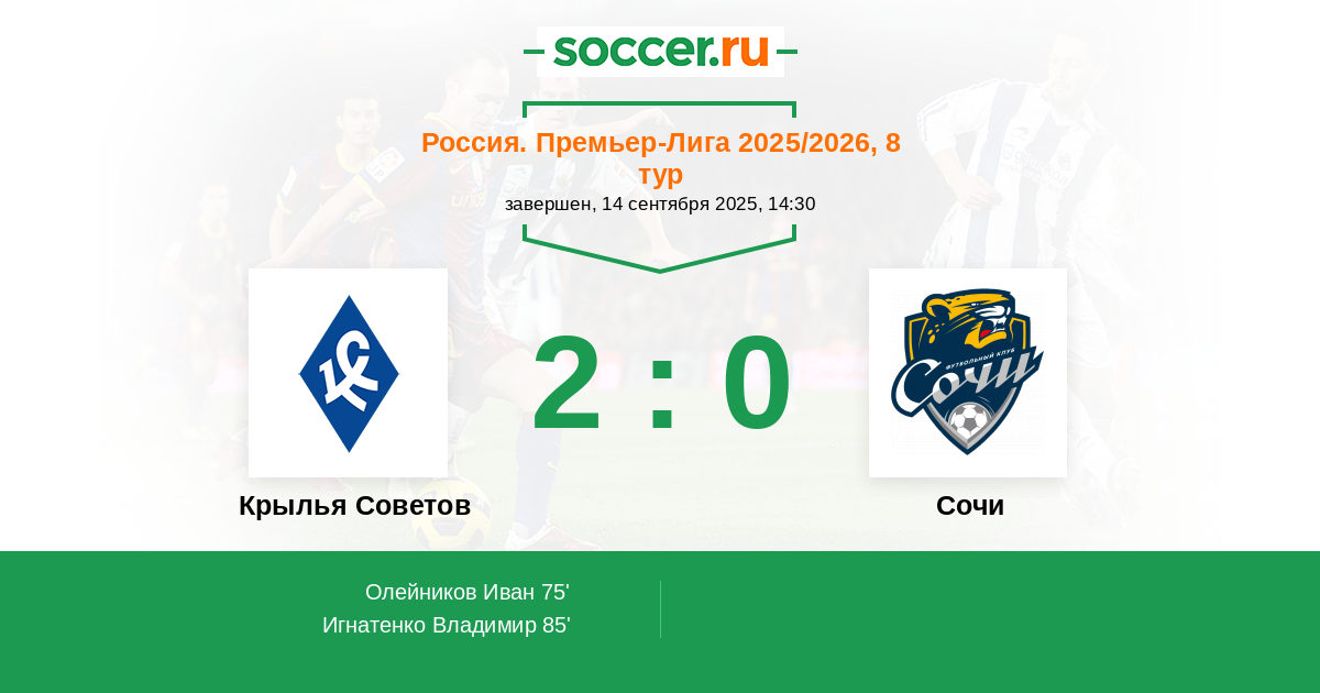 Ну во-первых по составу Сочи не уступает + у Крыльев не сыграет Раков у которого на счёту 5 голов из общекомандных 11. Во-вторых Сочи возглавил многоуважаемый тренер Осинькин, который уже доказал свою профпригодность, и не забываем что Игорь Витальевич изнутри знаком с командой Крылья и знает на что они способны или неспособны.