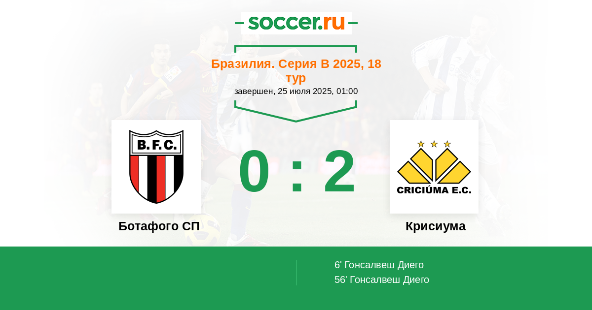 6' (0:1) Гонсалвеш Диего (77) (Хоната Роберт (10))