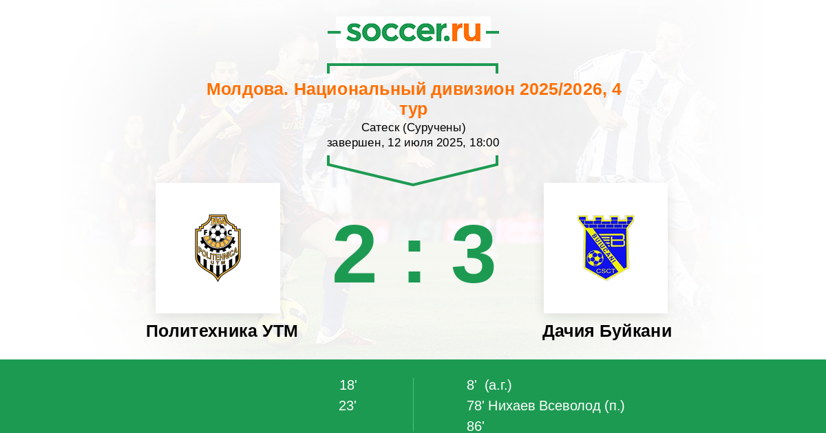 Запасные: 1 C. Leu, 7 Спринцан Артур, 13 Туев Артур, 2 Фортуна Нику, 3 Гонца Кристиан (с 66'), 9 Пегза Фабиан (с 52'), 12 Урсу Александру, 16 Гхинаитис Александру (с 64'), 19 Гумени Николае, 23 Андрейчу Данил (с 64')