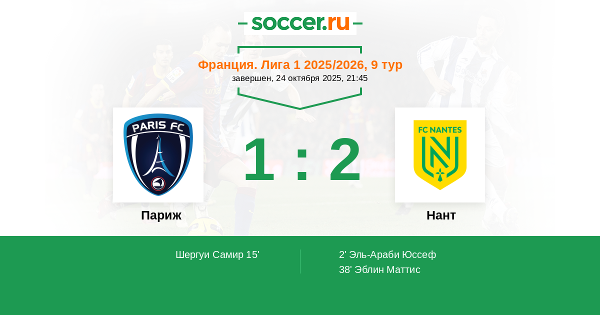 15' (1:1) Шергуи Самир (31) (Лис-Мелу Пьер (33))
