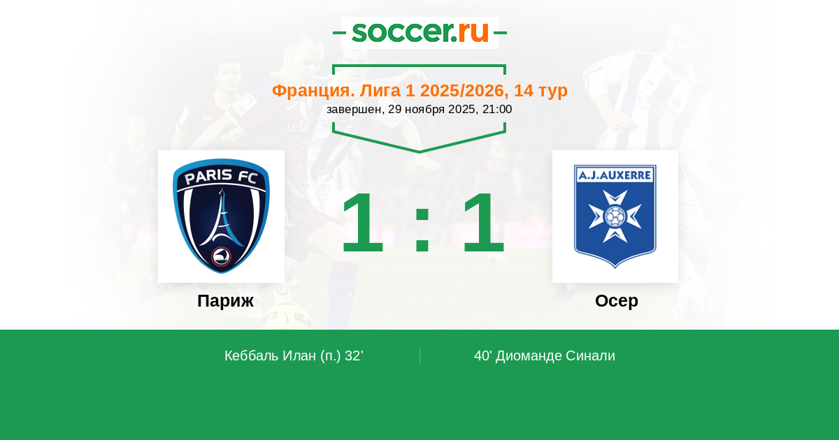 40' (1:1) Диоманде Синали (20) (Синайоко Лассине (10))