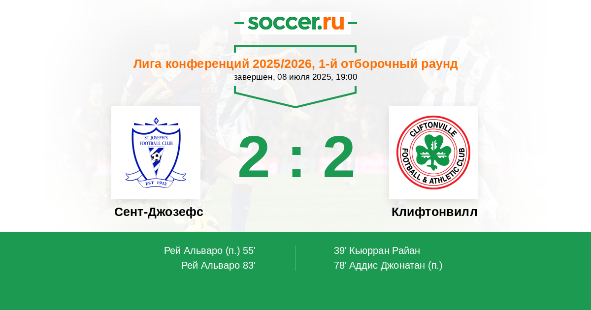 83' (2:2) Рей Альваро (10) (Волс Леон (11))