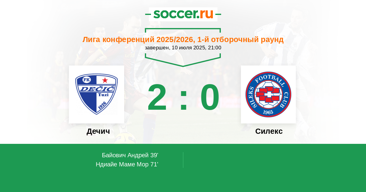 39' (1:0) Байович Андрей (14) (Стрикович Вук (77))