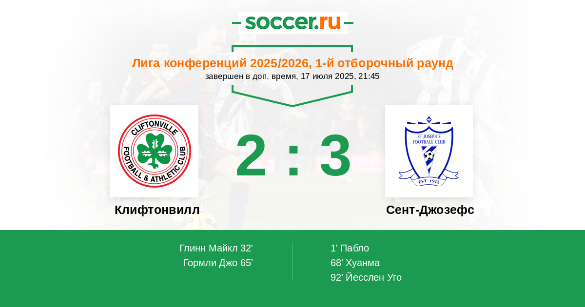 32' (1:1) Глинн Майкл (21) (Кьюрран Райан (9))