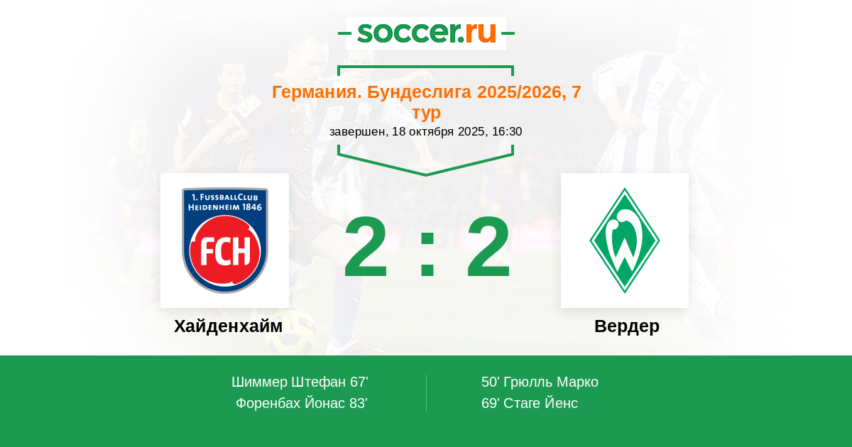 67' (1:1) Шиммер Штефан (9) (Буш Марнон (2))