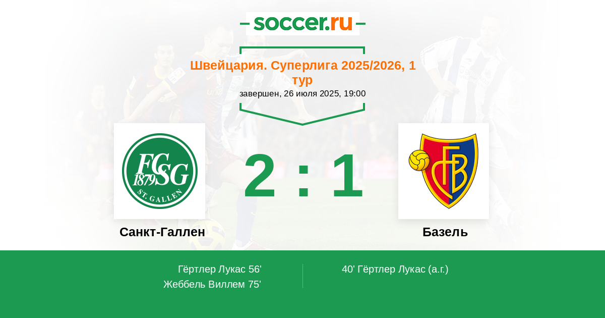 40' (0:1) Автогол Гёртлер Лукас (16)