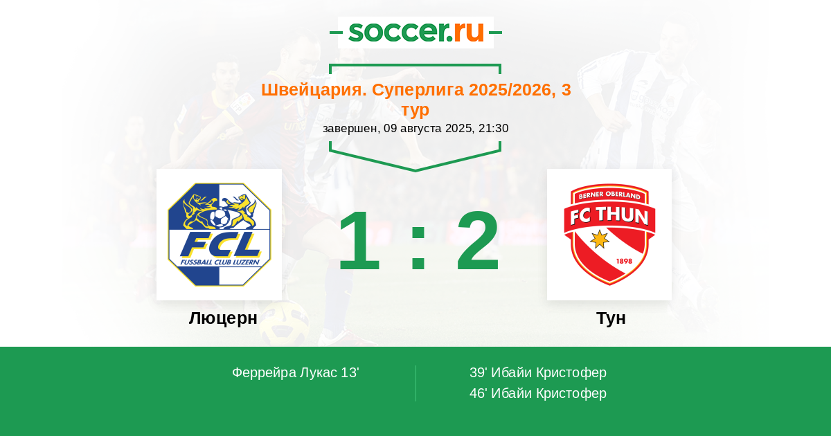 39' (1:1) Ибайи Кристофер (18) (Бертоне Леонардо (6))