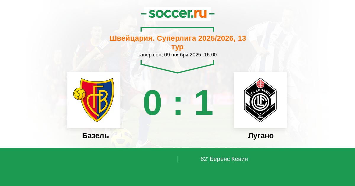 62' (0:1) Беренс Кевин (91) (Коррея Даниэль (27))