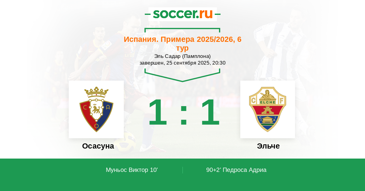 10' (1:0) Муньос Виктор (21) (Катена (24))