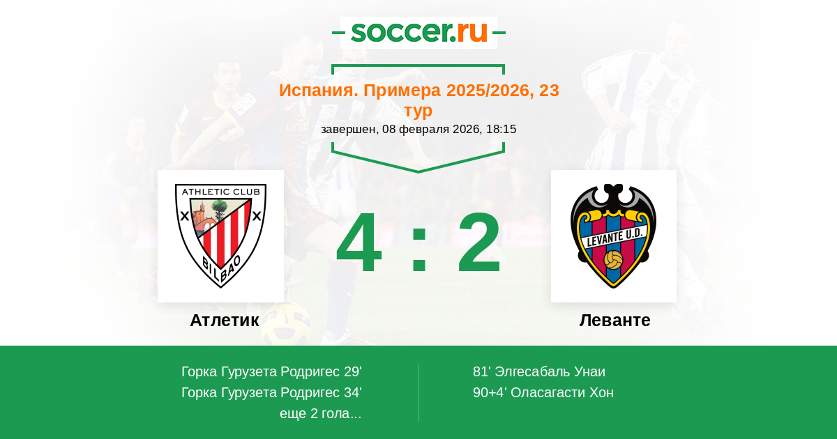 34' (2:0) Горка Гурузета Родригес (11) (Уильямс Иньяки (9))