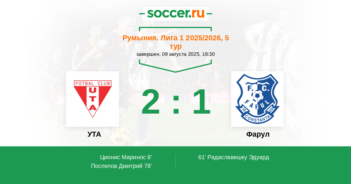 61' (1:1) Радаславешку Эдуард (20) (Исфан Александру (31))