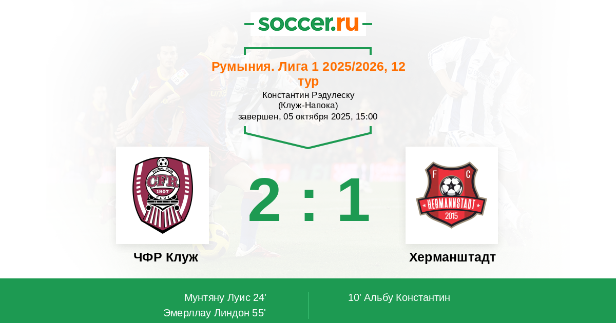 55' (2:1) Эмерллау Линдон (18) (Мунтяну Луис (9))