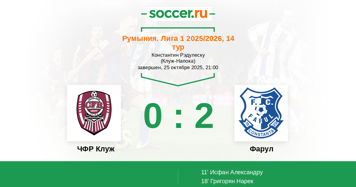 11' (0:1) Исфан Александру (31) (Николов Бобан (24))