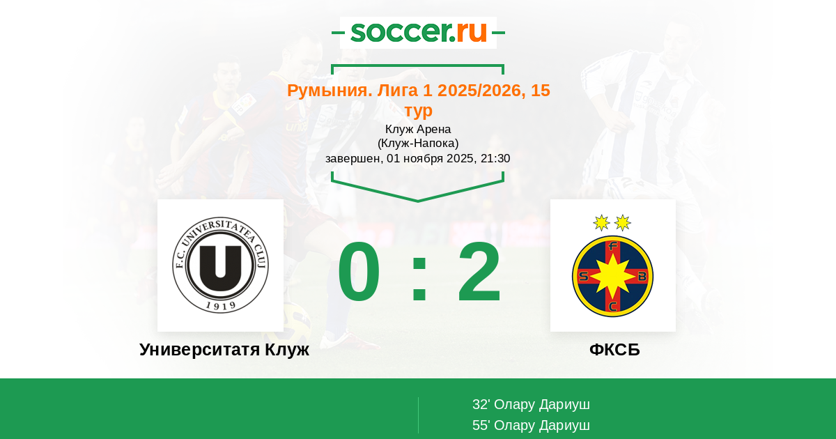32' (0:1) Олару Дариуш (27) (Лишандру Михай (16))