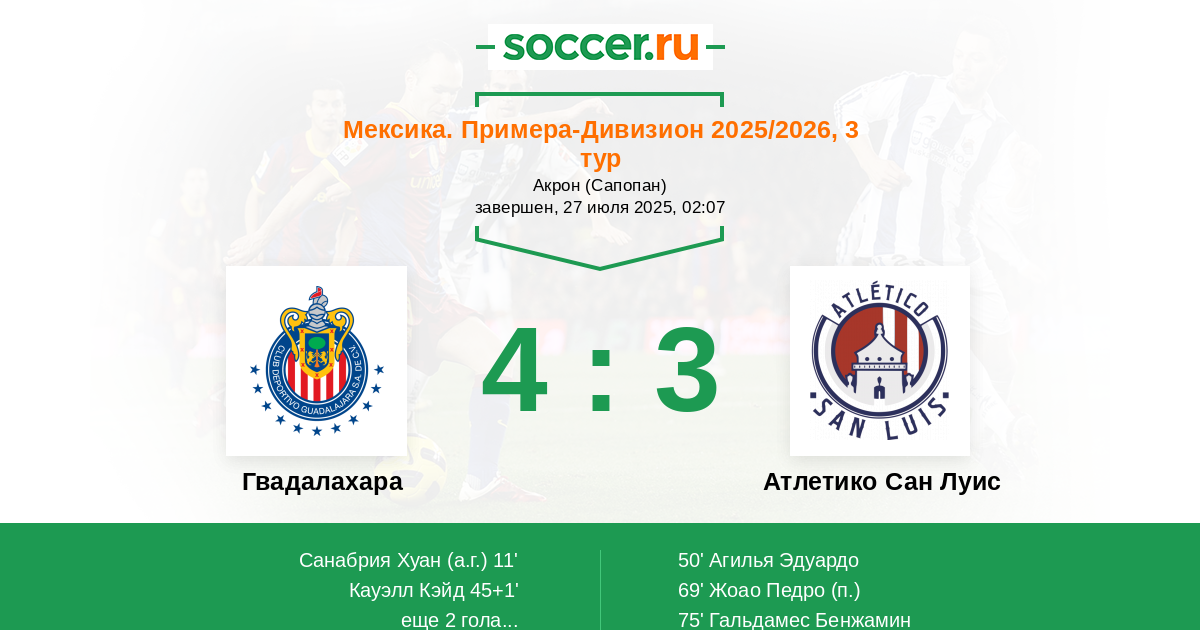 Запасные: 16 Марчанд Жахазель (с 90'), 7 Гальдамес Бенжамин (с 70'), 14 Гарсия Мигель (с 62'), 29 Суарес Хавьер, 18 Круз Альдо, 62 Гонсалес Хосе де Хесус, 26 Перес Буке Себастьян, 17 Мартинес Габриэль, 4 Хулио Хуарес, 23 Лопес Сесар