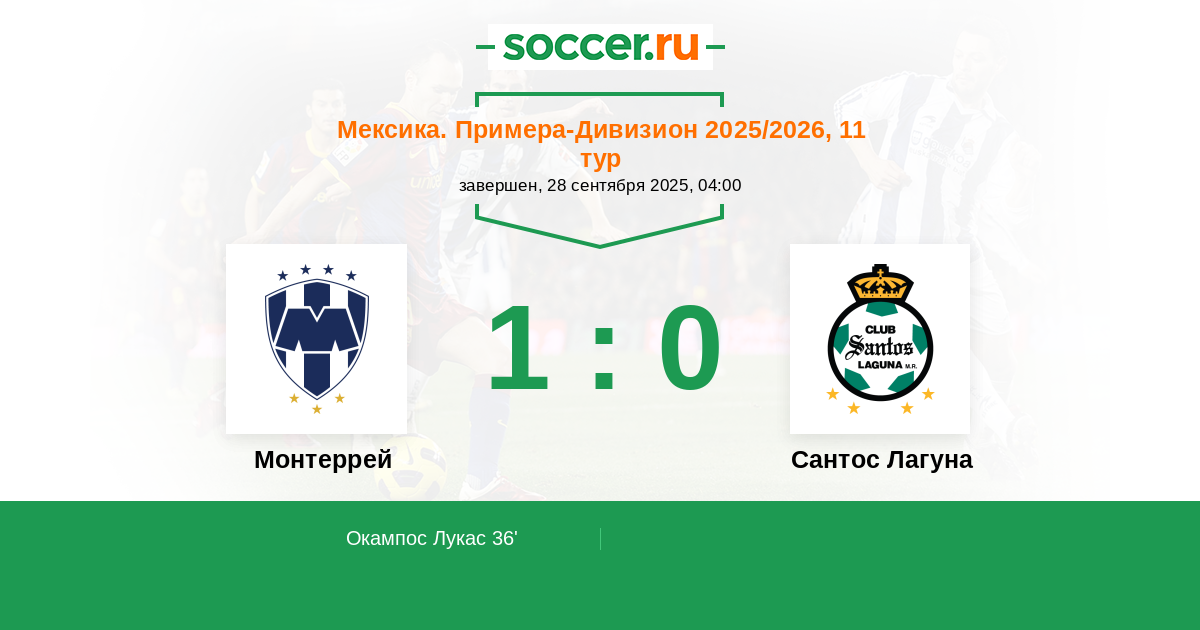 36' (1:0) Окампос Лукас (29) (Артеага Херардо (3))