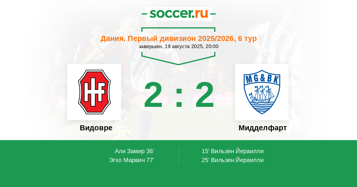 36' (1:2) Али Замир (4) (Кьергаард Оливер (14))