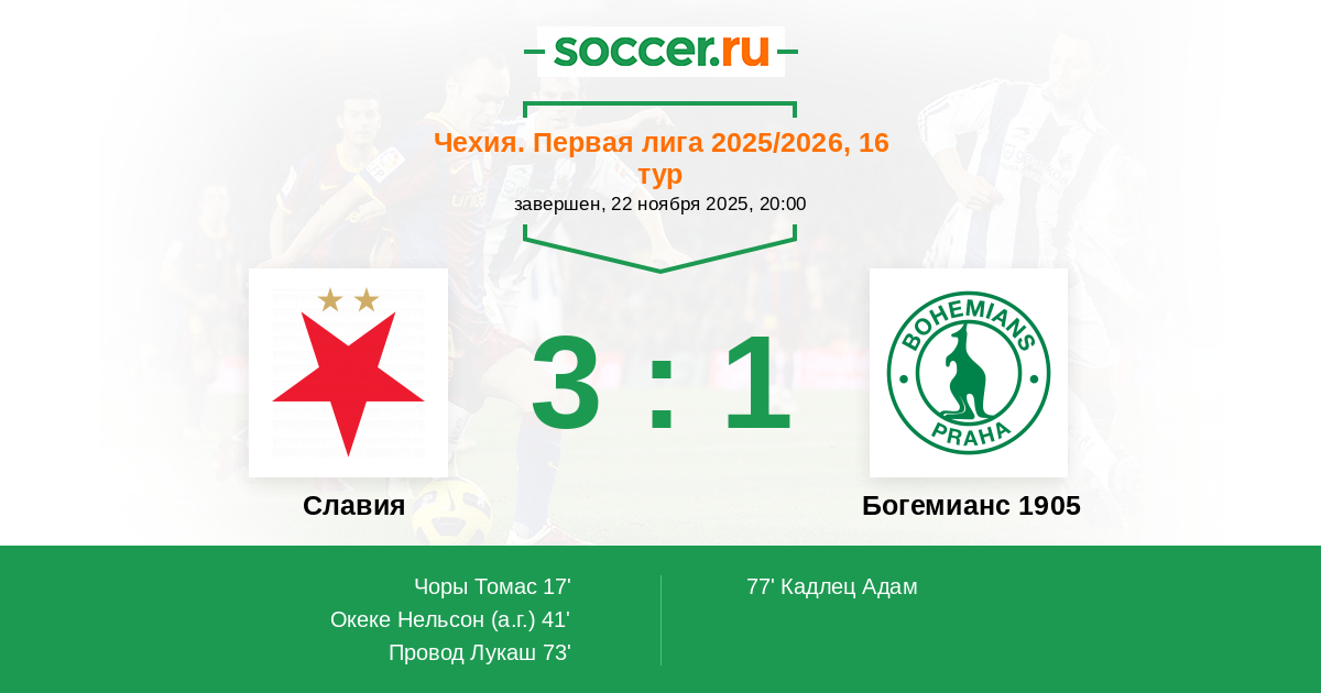 17' (1:0) Чоры Томас (25) (Провод Лукаш (17))