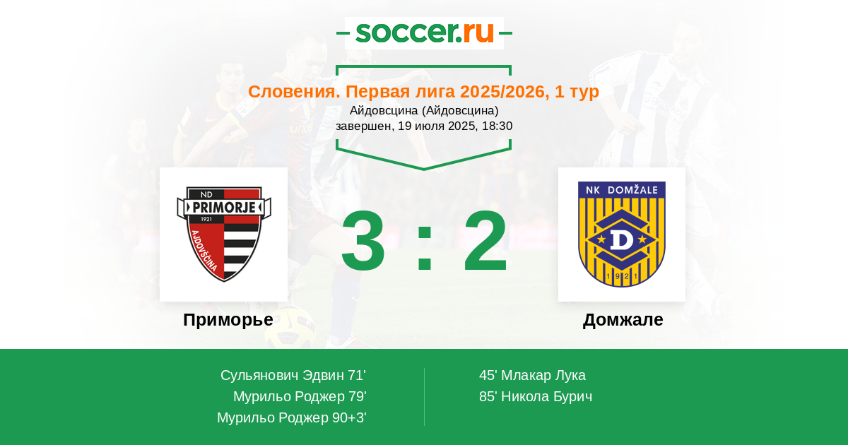 45' (0:1) Млакар Лука (11) (Довжан Караходжич Лука (15))