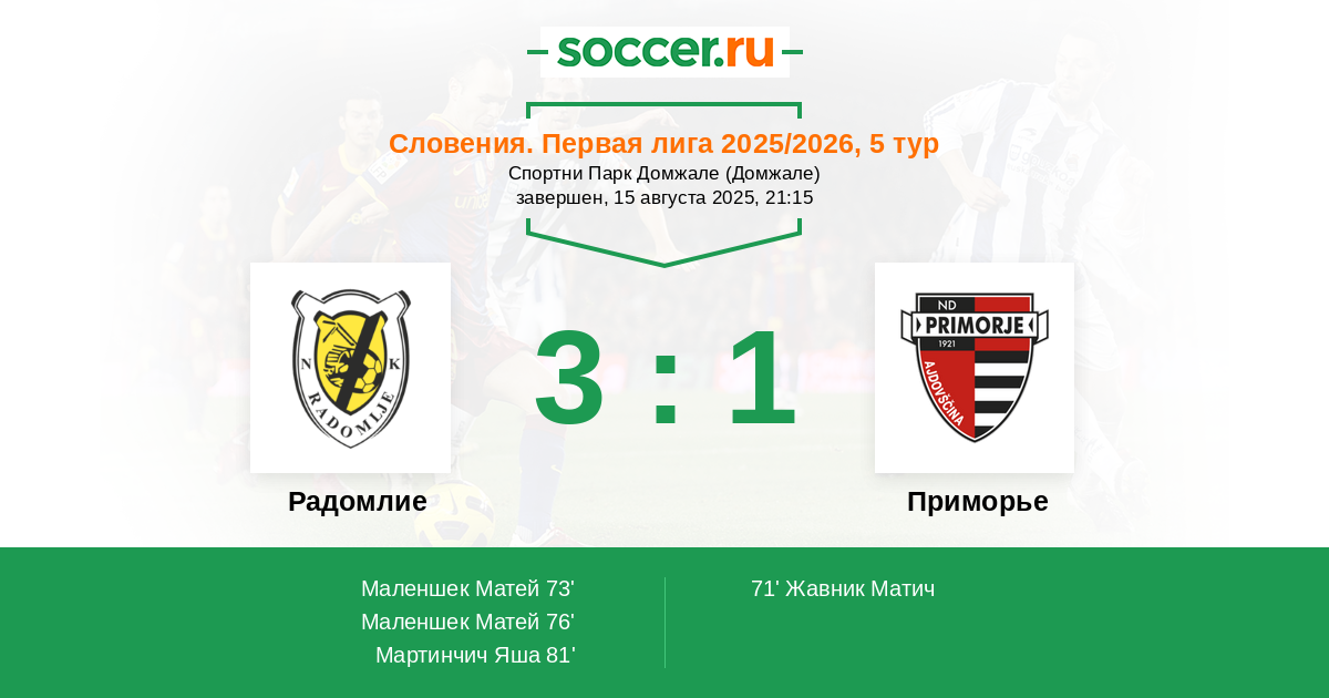 81' (3:1) Мартинчич Яша (11) (Крапухин Станислав (98))