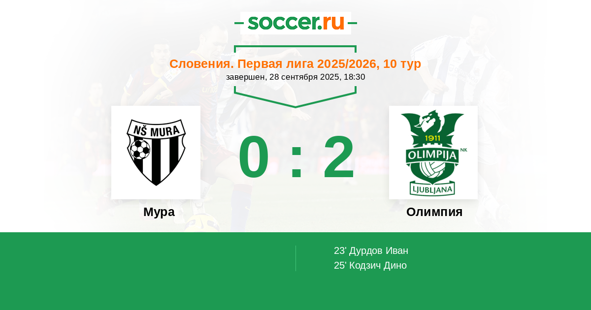 23' (0:1) Дурдов Иван (19) (Урбанчич Йост (3))