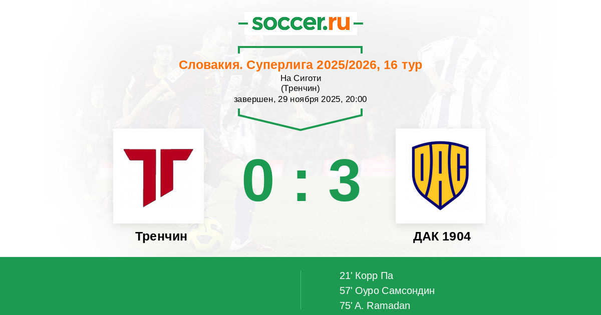 21' (0:1) Корр Па (14) (Оуро Самсондин (44))