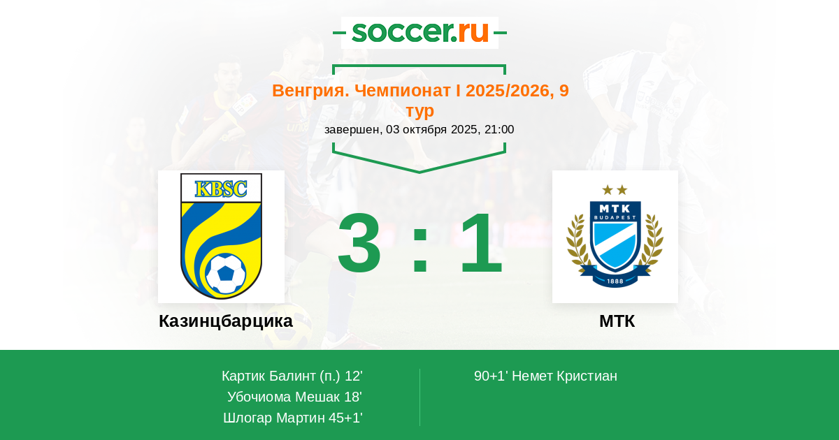 12' (1:0) Картик Балинт (10)