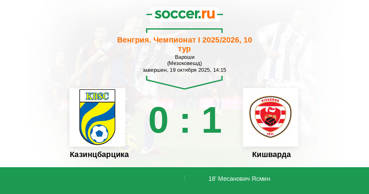 18' (0:1) Месанович Ясмин (27) (Биро Бенсе (29))
