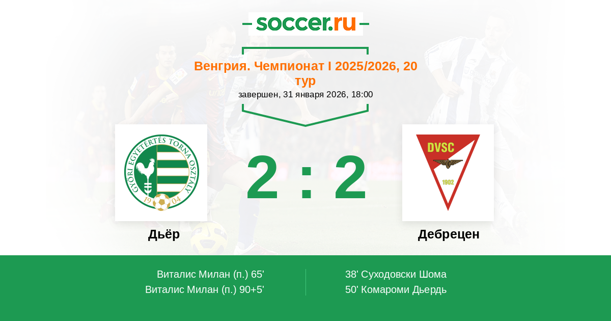 50' (0:2) Комароми Дьердь (11)