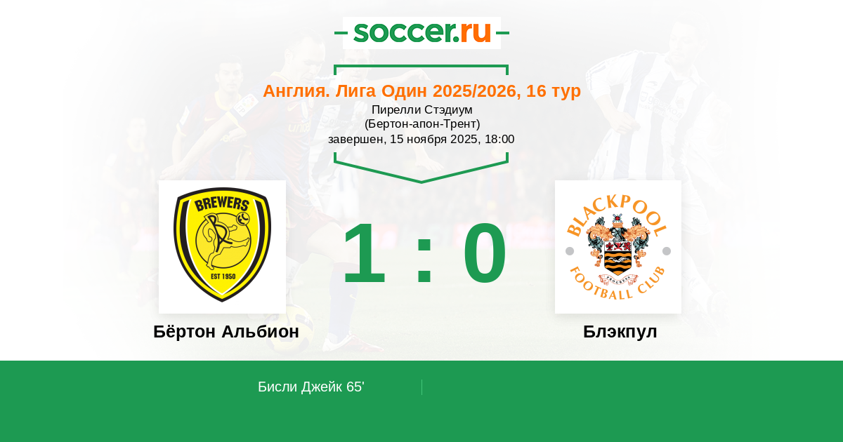 65' (1:0) Бисли Джейк (9) (Лофтхаус Киран (15))