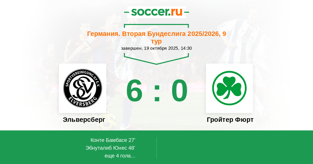 80' (4:0) Эбнуталиб Юнес (22) (Кейдель Феликс (43))