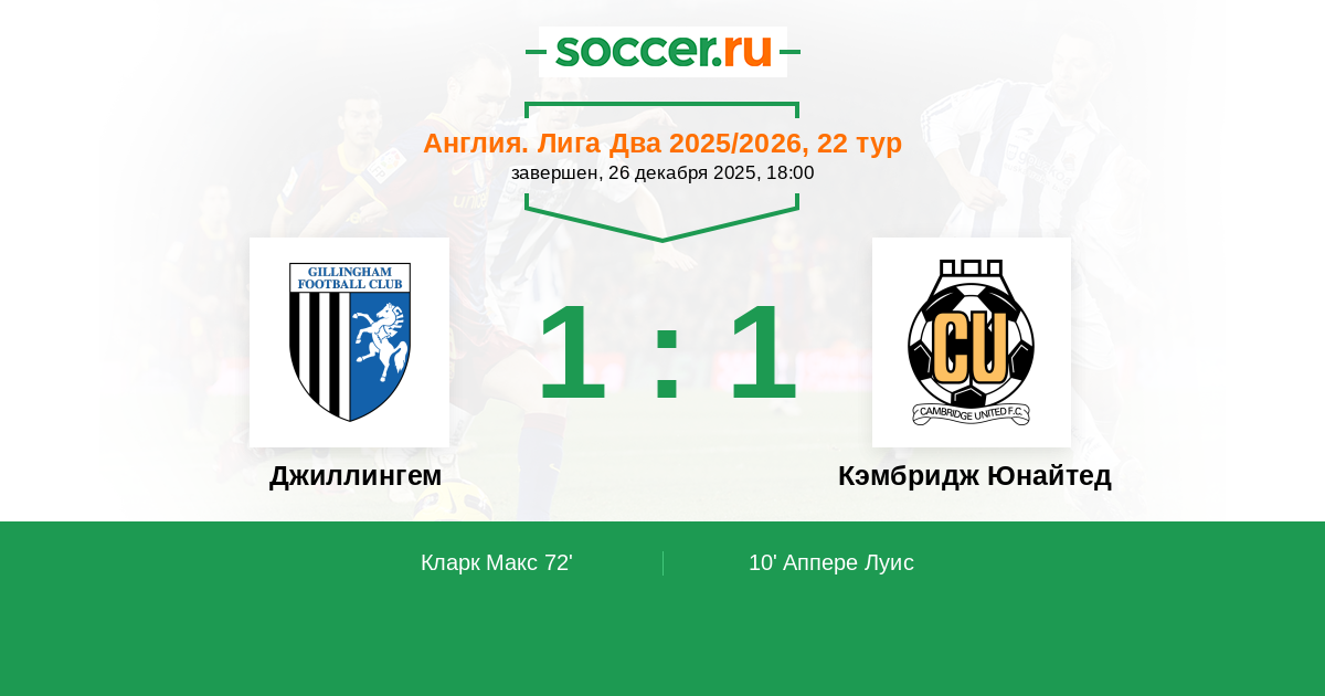 Джиллингем - Кэмбридж Юнайтед