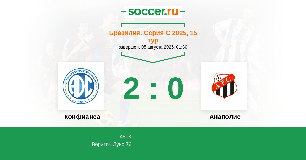 Запасные: 12 Аллан Араухо, 3 Майкон, 8 Жон Жон (с 80'), 15 Сантос Тьяго (с 68'), 16 Рибейро Ленон, 17 Renan (с 66'), 18 Джон Клей (с 66'), 19 Сантос Матеус, 20 Рафинья, 21 Николас (с 80'), 22 Фабрисио, 23 Гильерме