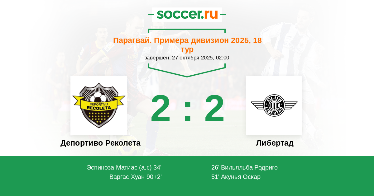 34' (1:1) Автогол Эспиноза Матиас (17)