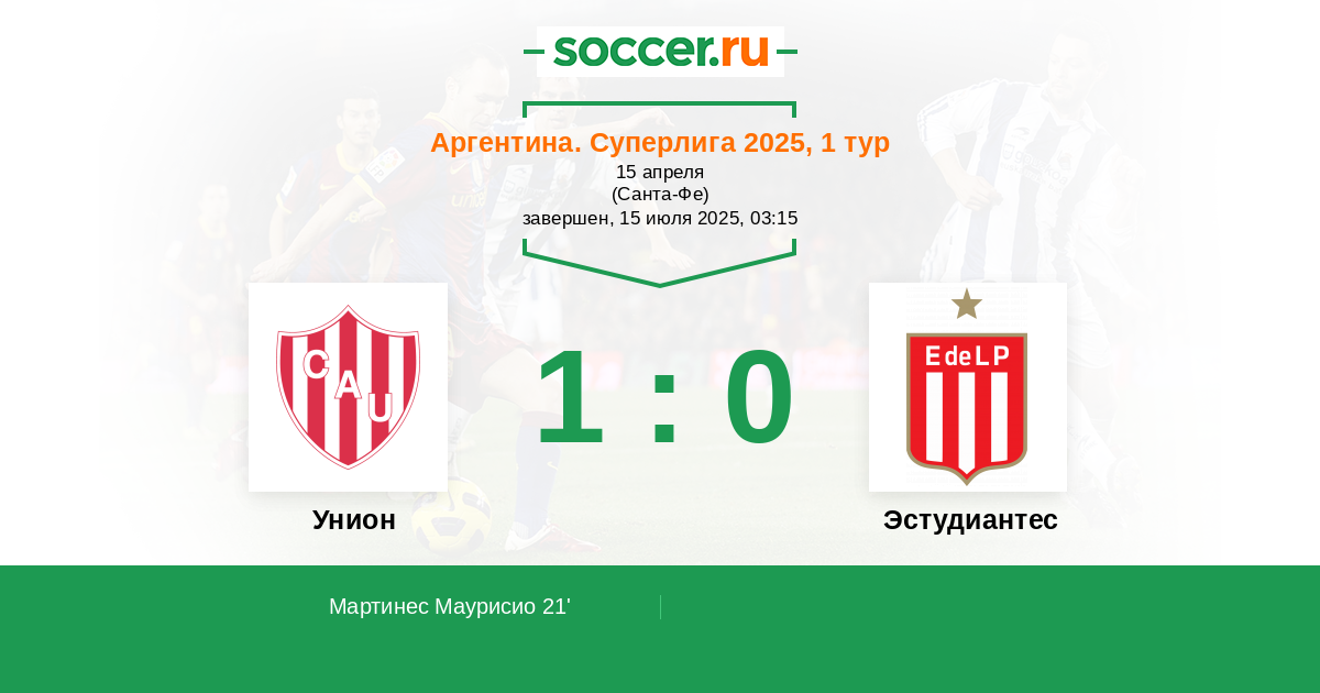 21' (1:0) Мартинес Маурисио (16)