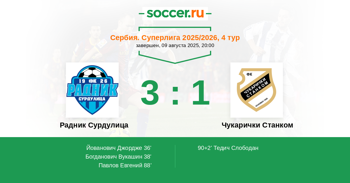 90+2' (3:1) Тедич Слободан (9) (Йованчич Душан (77))