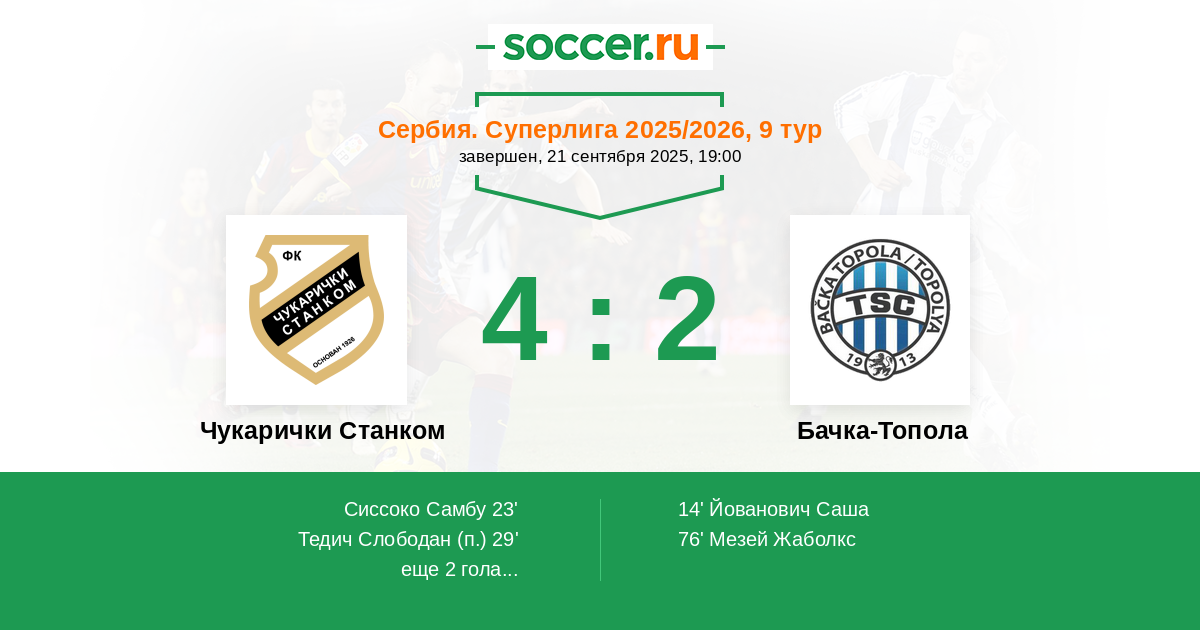 23' (1:1) Сиссоко Самбу (14) (Тедич Слободан (9))