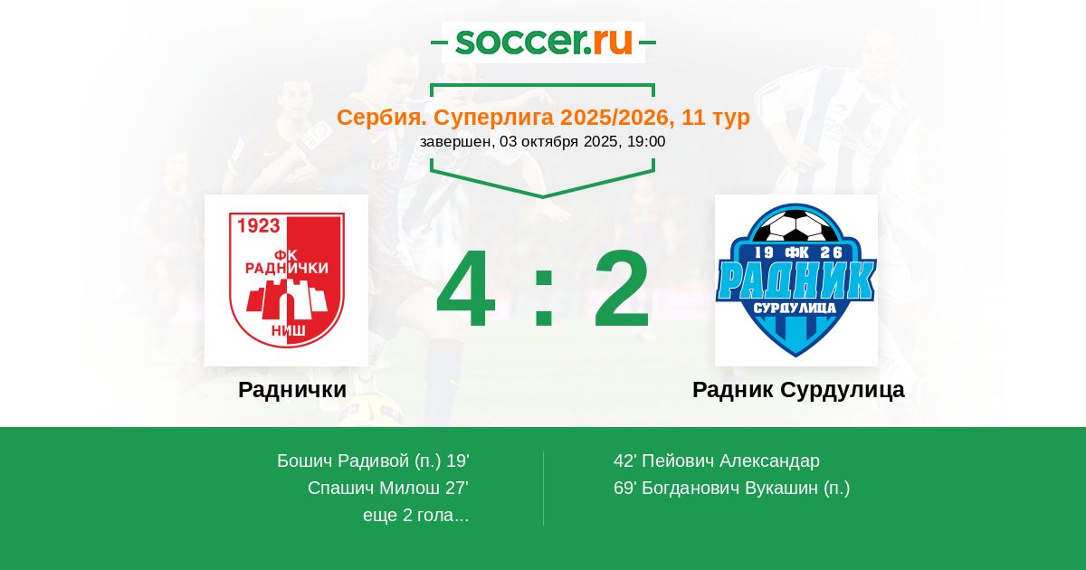 Запасные: 94 Станивукович Деян, 2 Мияйлович Марко (с 85'), 71 Djordje Petrovic, 3 Ямкам Мбури (с 76'), 6 Кануте Франк (с 76'), 30 Радоньич Матея, 89 Издерич Лука (с 62'), 8 Белакович Неманья, 9 Коне Ласина, 12 Мбуп Бабакар (с 63')