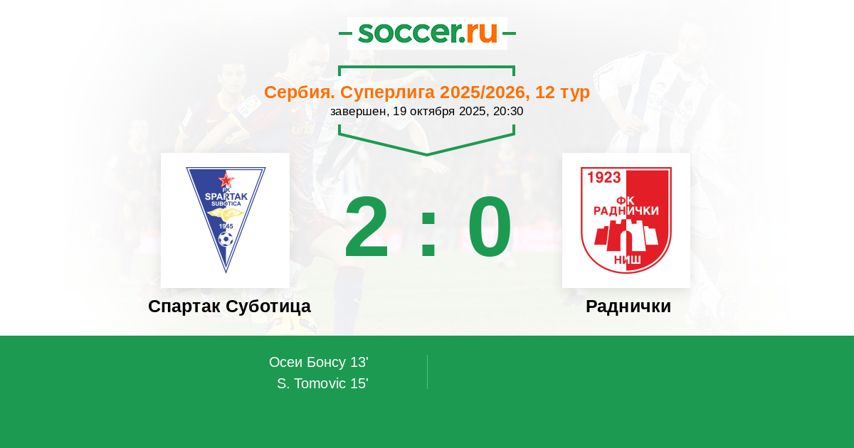 13' (1:0) Осеи Бонсу (20) (Антонио Леонардо (27))