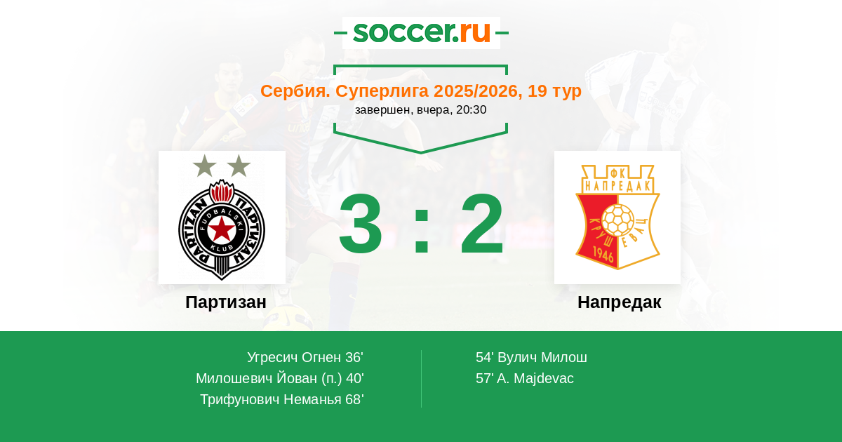36' (1:0) Угресич Огнен (36) (Милошевич Йован (7))