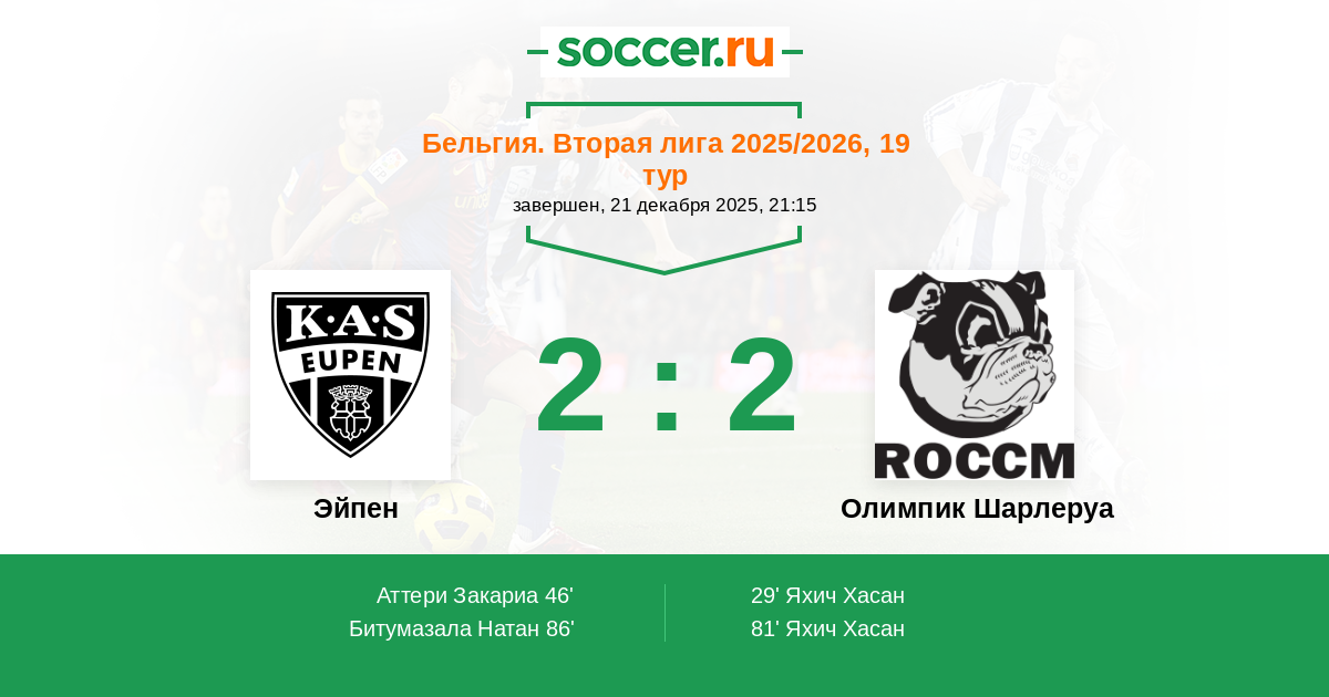 81' (1:2) Яхич Хасан (4) (Кахбах Матье (17))