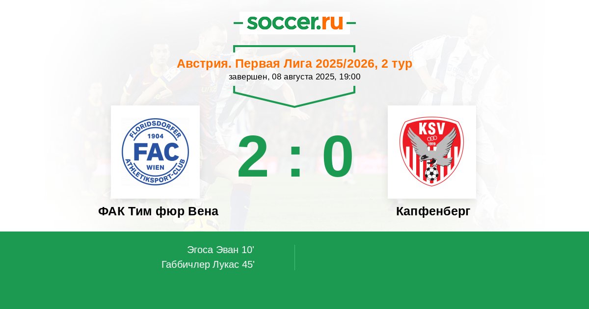 10' (1:0) Эгоса Эван (47) (Неманн Мориц (17))