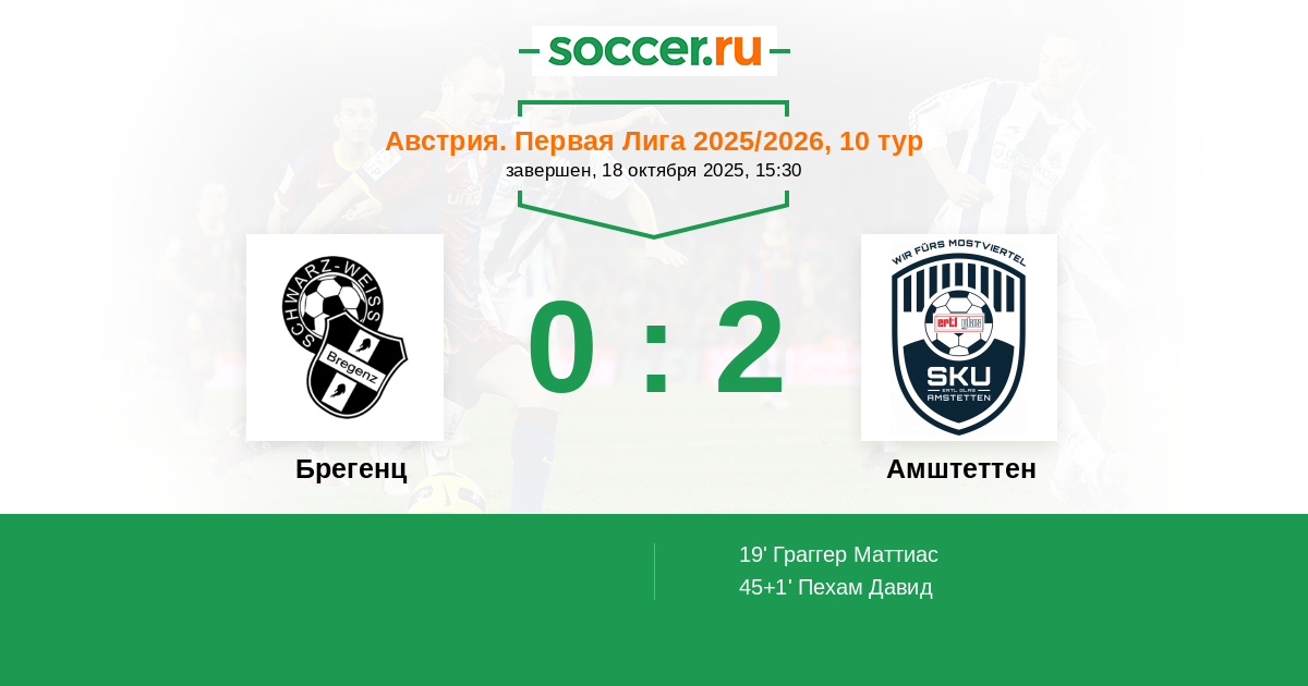 19' (0:1) Граггер Маттиас (48) (Майер Томас (16))