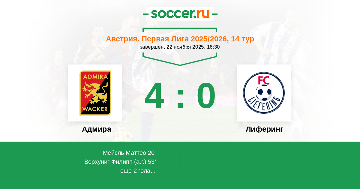 53' (2:0) Автогол Верхуниг Филипп (9)