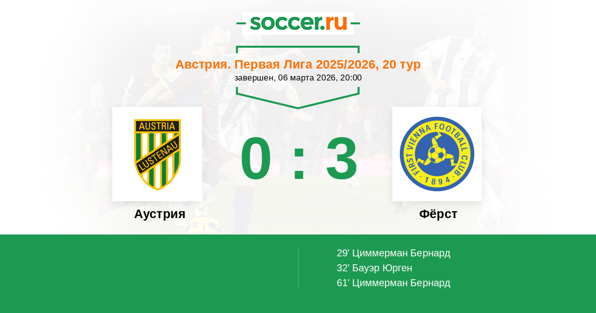 32' (0:2) Бауэр Юрген (25) (Розенбергер Бенжамин (17))
