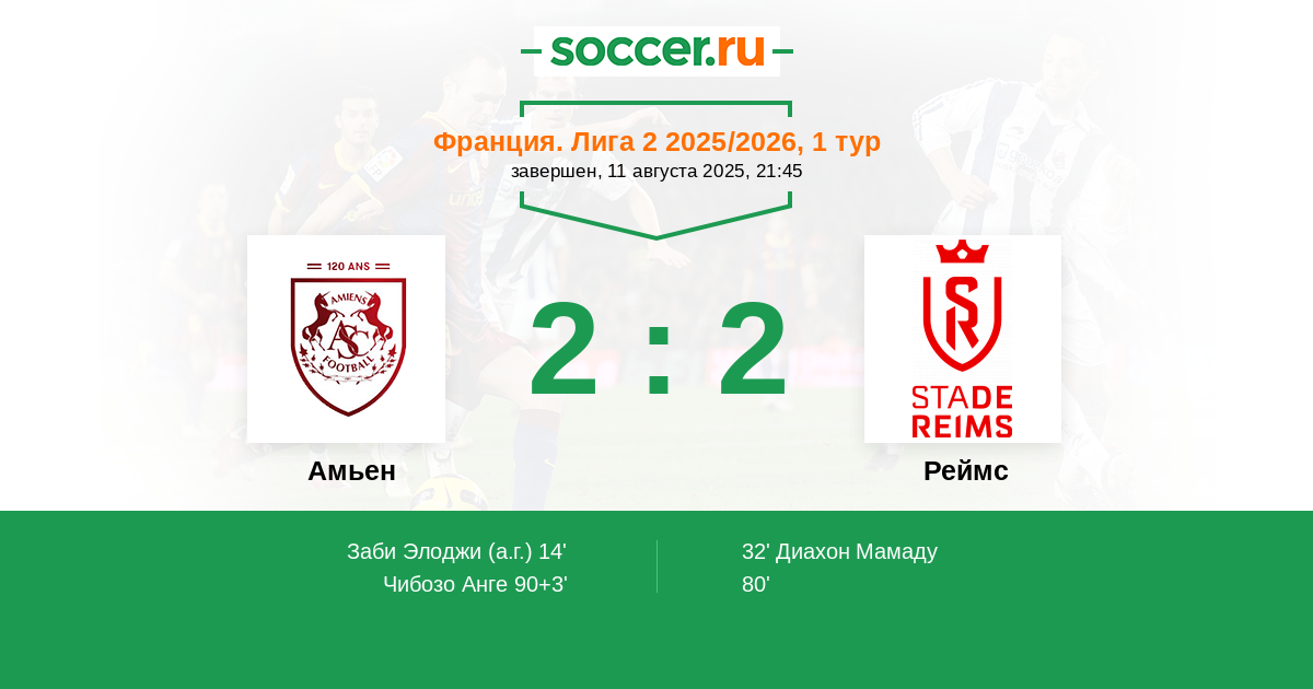 32' (1:1) Диахон Мамаду (67) (Теума Тедди (10))